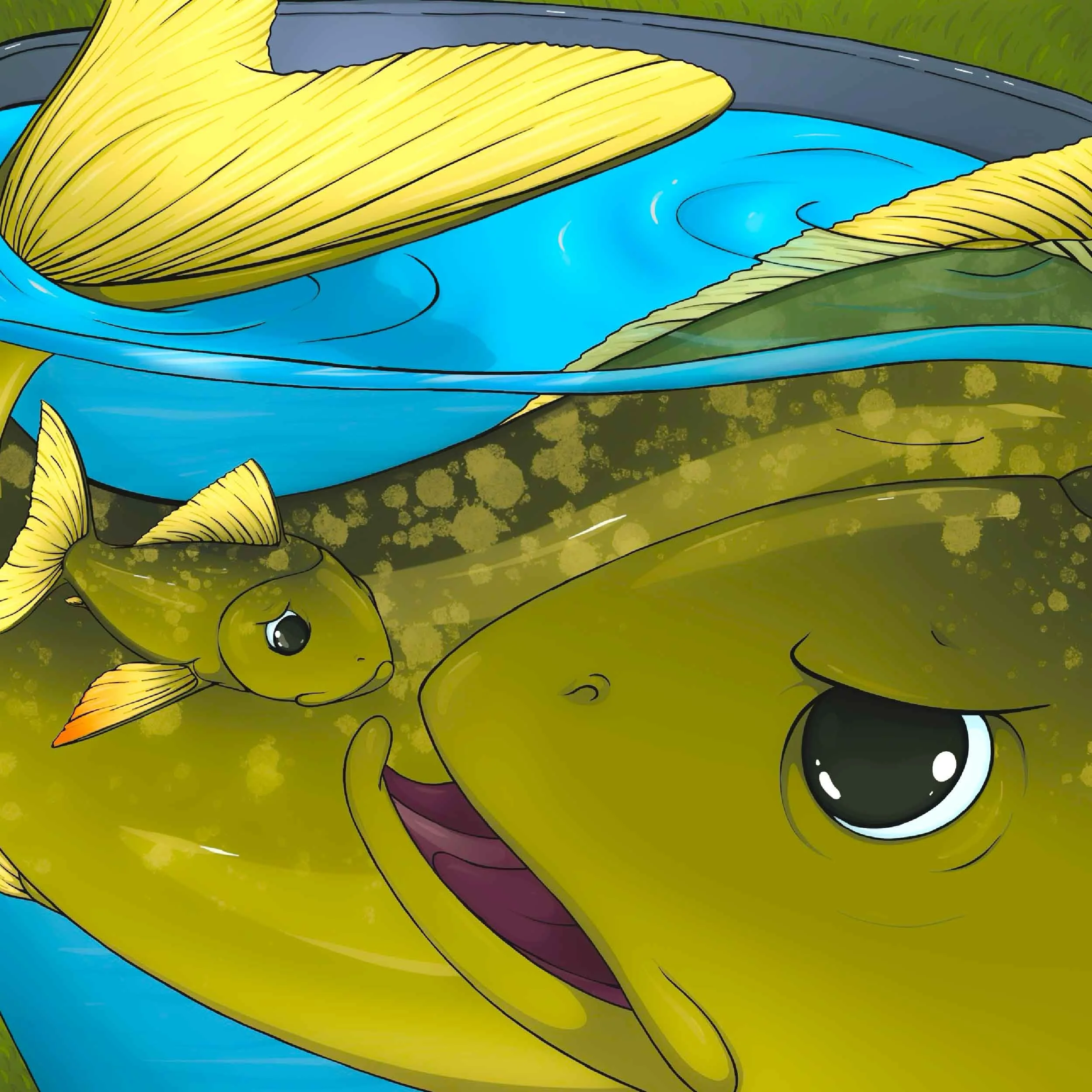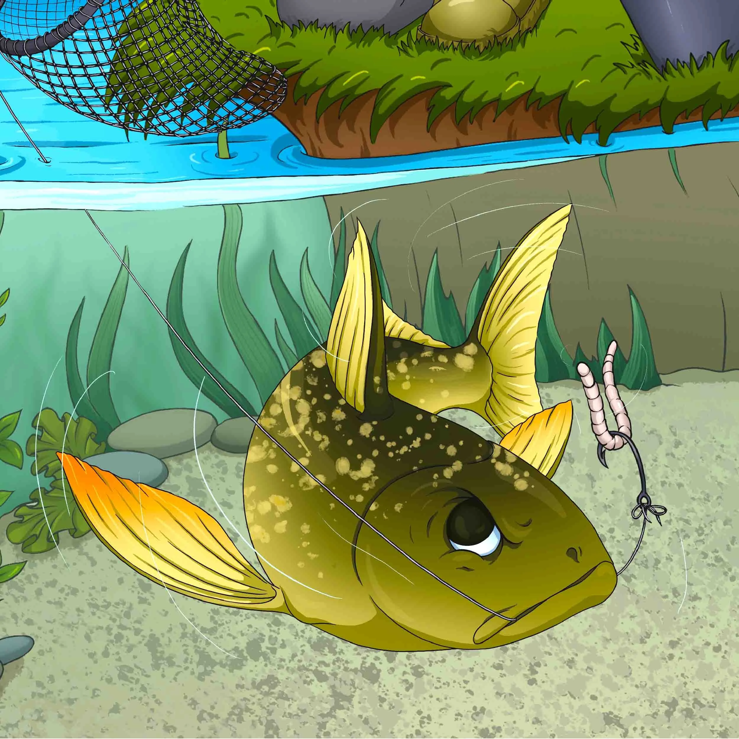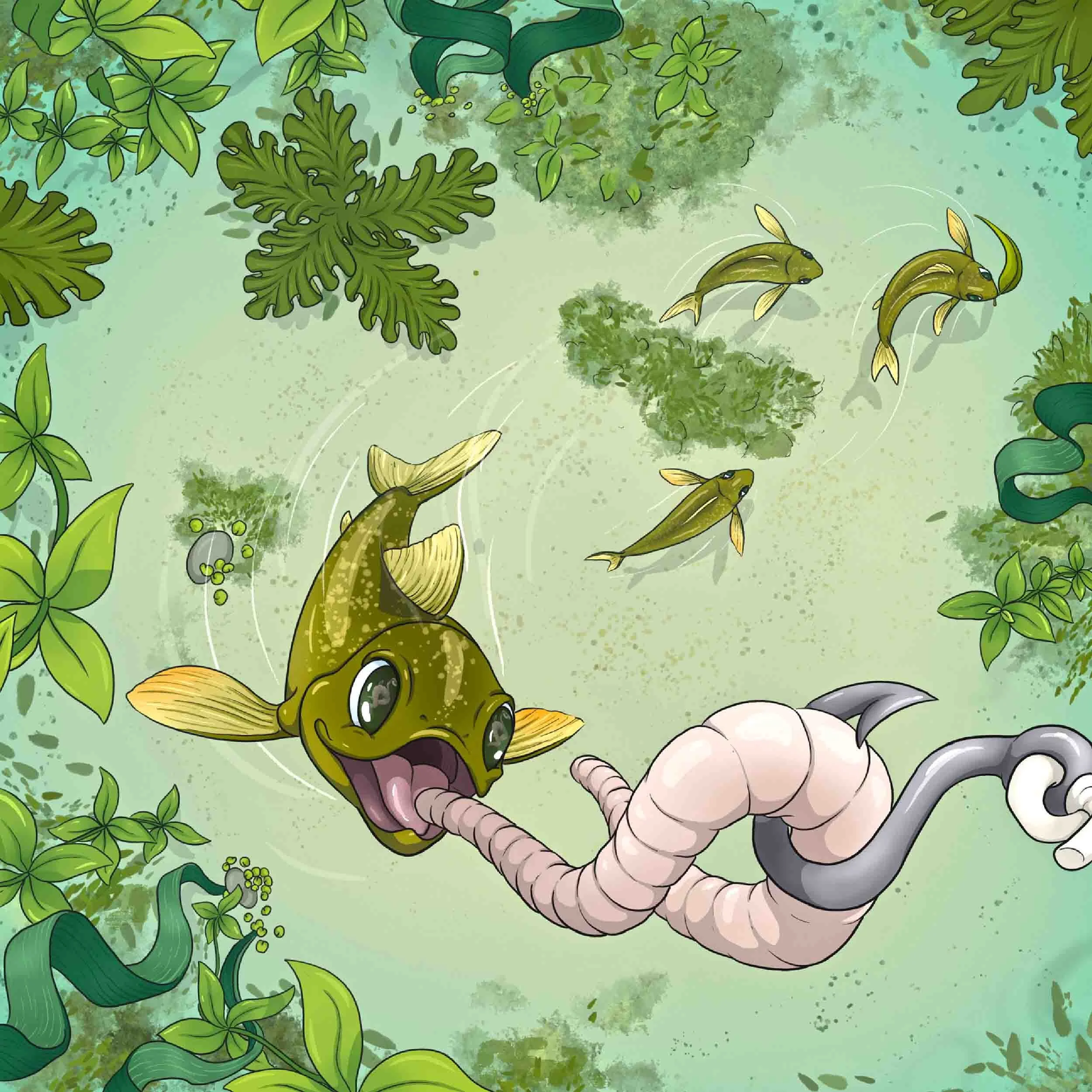 the youngest fish, Finn, found himself in danger. His attention was drawn to a worm, but he didn’t notice