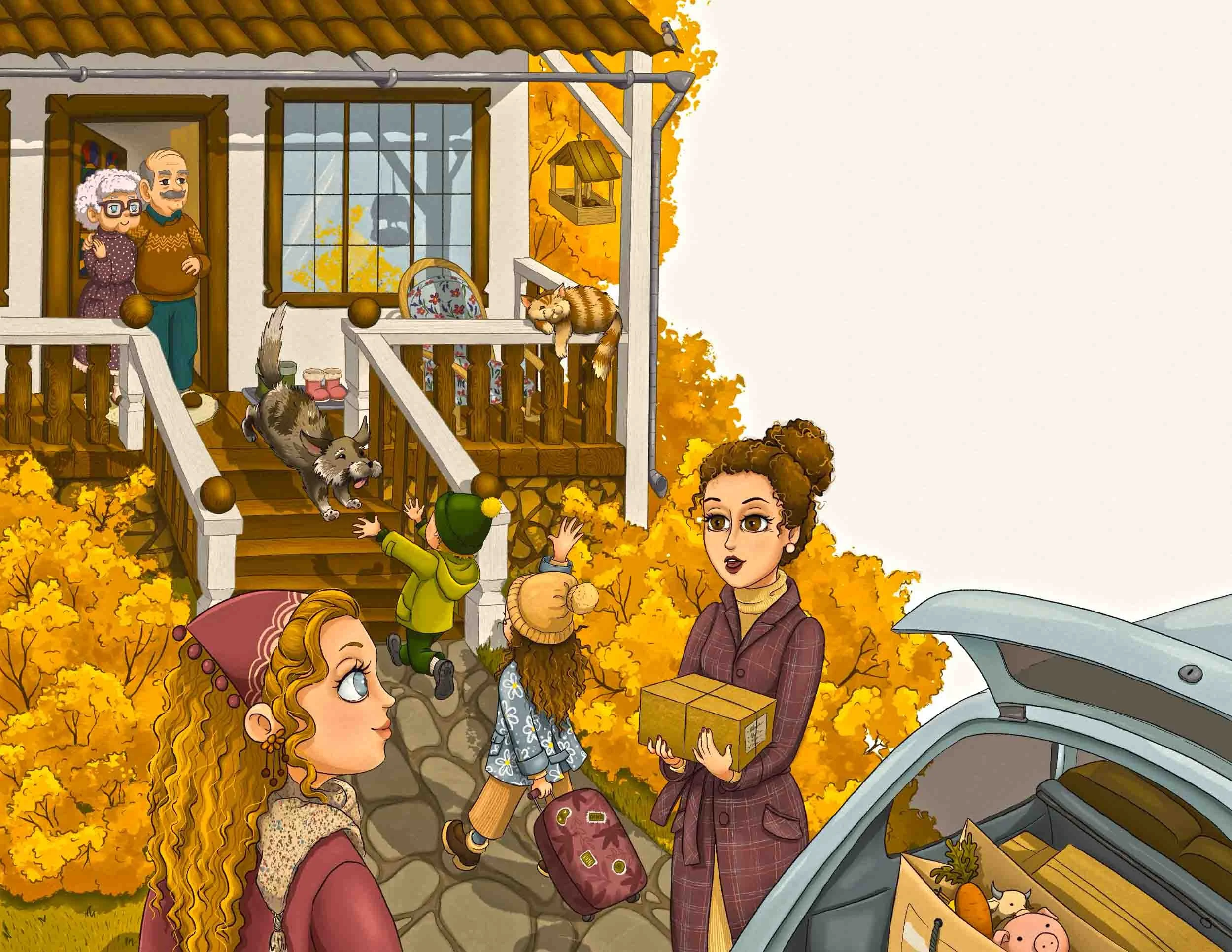 For the illustrations, I wanted them to feel bright, like childhood memories, but also warm and cozy, like a grandparent’s home. My goal was to make readers feel the warmth, comfort, and happiness of those moments.