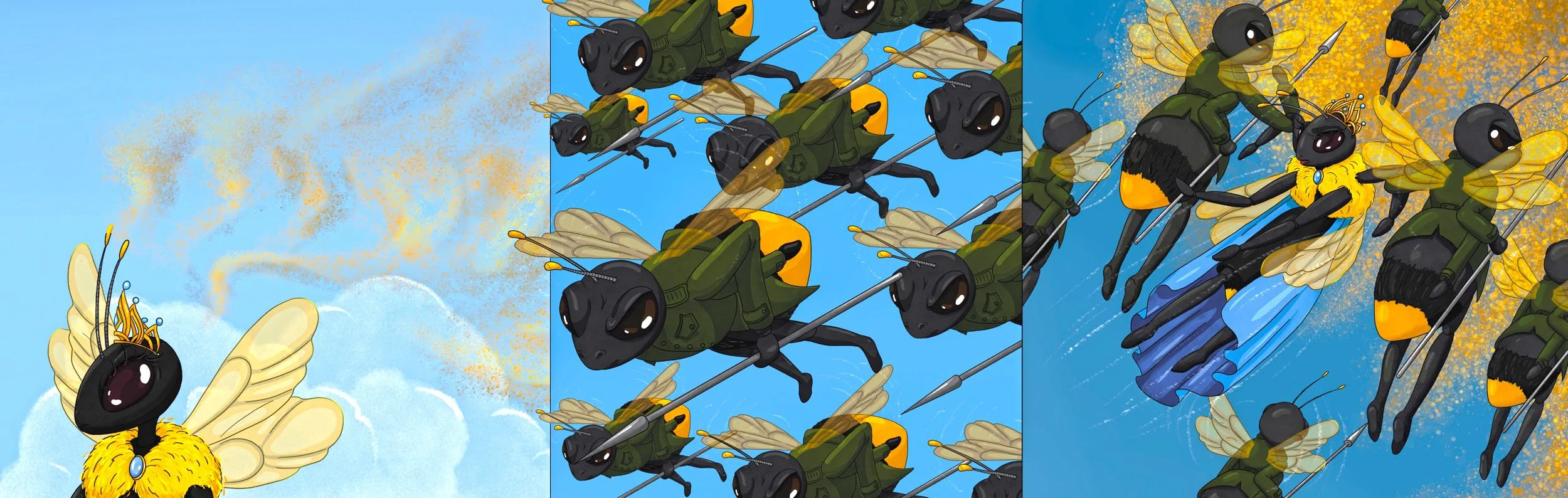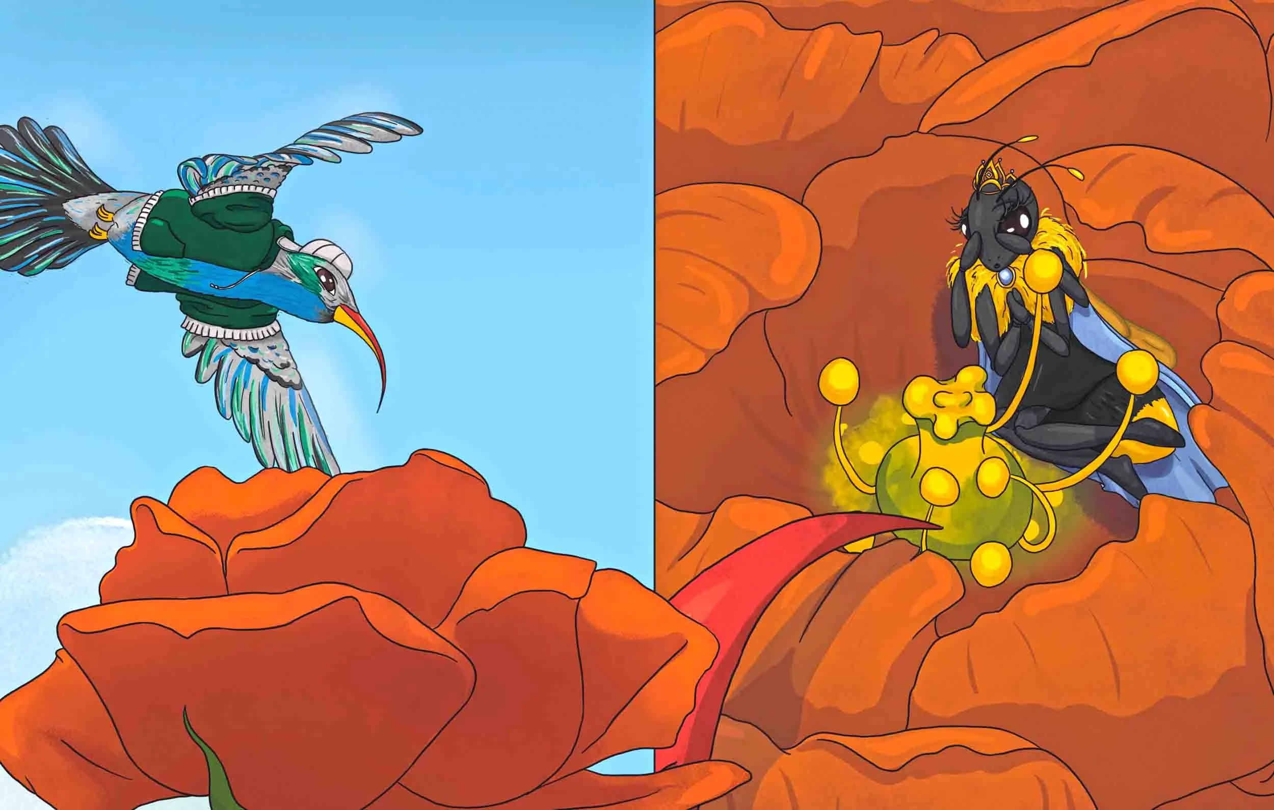 While creating the illustrations, I aimed to convey the dynamic nature of the story by changing perspectives and the characters’ poses, bringing