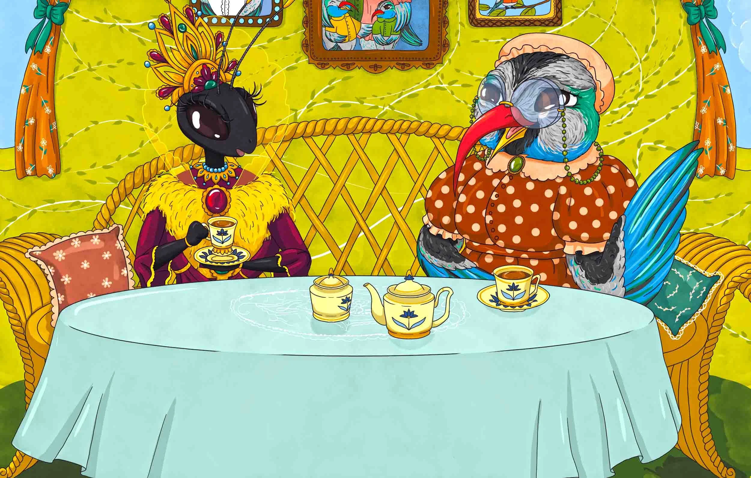 Working on this book was an incredibly fascinating experience for me. I wanted to create a unique world for the characters, where they live in nature but with design elements that make their houses and clothes truly special. Herbie lives in a small, cozy nest-like house among the branches